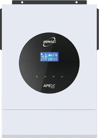 4000VA/4000Watt/24VDC/230VAC Pure sine wave Power factor range: 0.9 lead–0.9 lag Battery independent design Enhance MPPT solar charge controller up to 6000 WATTS Maximum solar charge current 120A Battery equalization function to optimize battery performance and extend lifecycle Compatible with lithium ion battery Reserved communication port for BMS Communication interface USB/RS232/RS485/CAN Touchable button with 2.5” graphic LCD Built-in Wi-Fi for mobile monitoring (App is available) Support OTA firmware PV, Grid and battery energies generation and consumption data available Dual AC output for smart load management Feeding power into grid External CT sensor to guarantee 100% self-consumption Maximum PV input current 27A Built-in anti-dust kit